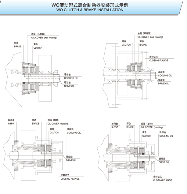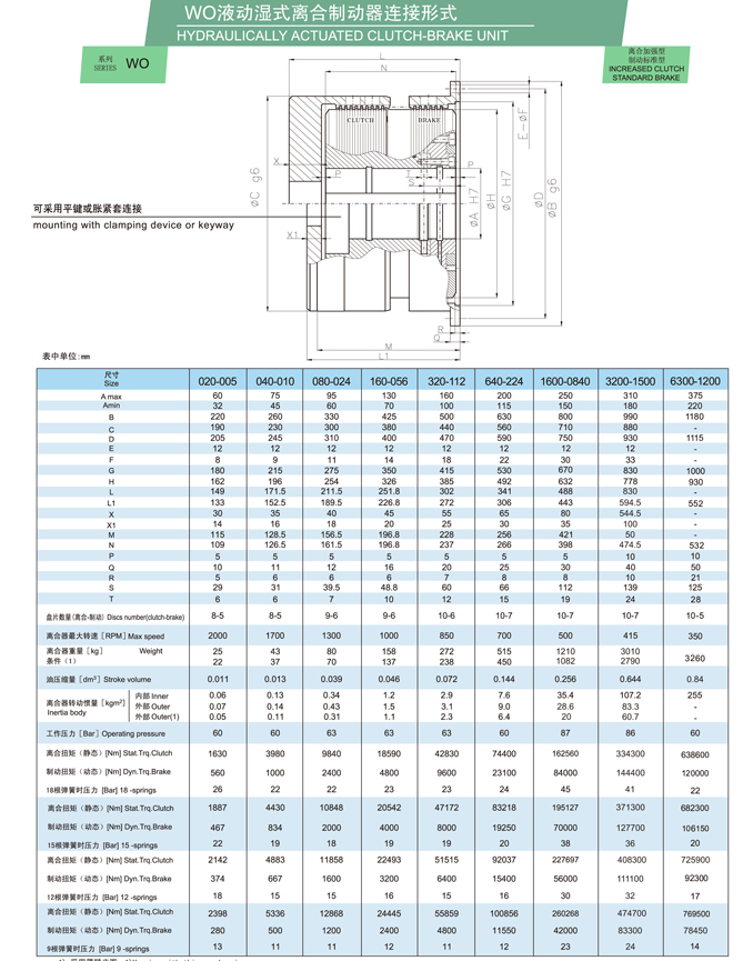 WO系列是一種組合式離合器 制動(dòng)裝置,采用燒結(jié)青銅摩擦材料油驅(qū)動(dòng)。它通常用于接合和制動(dòng)任何工業(yè)機(jī)器(偏心壓力機(jī)、關(guān)節(jié)壓力機(jī)、金屬?zèng)_壓、封邊機(jī)、沖床、深沖壓力機(jī)、機(jī)械剪切機(jī)、熱鍛等)。它是要求高性能和最大可靠性的機(jī)器的理想產(chǎn)品。液壓離合器工作原理是通過軸和離合器輪轂的油壓使活塞脫開制動(dòng)器摩擦盤,直到與離合器摩擦盤接觸,離合器嚙合。該系列配備了燒結(jié)圓盤,由于其巨大的散熱能力